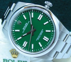 BRAND NEW & UN-TOUCHED 124300 SS Oyster Perpetual No Date 41mm Green “Index” Dial / Smooth Bezel # 633 Sold new on April 28th 2021, Brand New & Un-Touched with All of the Factory Original Finish from new, RARE Green Dial, Newest Style Watch with Slender Case and newest 3230 movement, 100% Authentic & Original Rolex, We have the Authentic & Original Rolex Inner & Outer “Wave” Boxes, Oyster & Warranty Booklets, Leather Warranty Sleeve, Bezel Protector, Green & full Serial Number Hang Tags and the 5 year Rolex Warranty Card for this watch, under Rolex Factory Warranty until April 28th 2026 $13,995