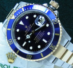 BRAND NEW with STICKERS 16613 Rolex TT Submariner Blue Dial - Bezel # D34 Sold new in December 2005, Purchased from a Collector (2nd Owner), This watch is NOS (new old stock) with ALL of the Original Factory Protective Stickers from new Including the Bracelet End Pieces and full Clasp Sticker, It still has the “sweat fading” black ink on the Original (green) model number Case Back Sticker, The Original Clear Case Back Sticker still has the “sweat fading” Red Stripe, The Original (blue / red) Protective Sticker is still on the Bracelet Clasp. 100% Authentic & Original Rolex, We have the Authentic & Original Rolex Inner and Outer “Wave” Boxes, Submariner – Oyster & Translation Booklets, Leather Warranty Sleeve, Amber & full Serial Number Hang Tags and the Original Expired Warranty Paper for this watch, Rolex Serviced $20,995