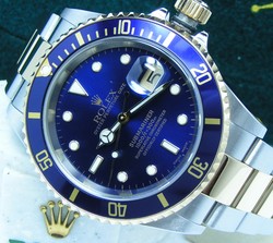 VIRTUALLY UN-WORN 16613 Rolex TT Submariner Blue Dial – Blue Bezel #K11 Sold new on December 14th 2001, Purchased from the Original Owner, This watch is Virtually Un- Worn still with most of the Factory Original finish from new (touched), The Original (green) model number Case Back Sticker is still “fresh” from the factory, 100% Authentic & Original Rolex, We have the Authentic & Original Rolex Inner and Outer Boxes, Submariner (Asian) – Oyster & Translation Booklets, Leather Warranty Sleeve and the Original Expired Warranty Paper for this watch, Rolex Serviced $18,495